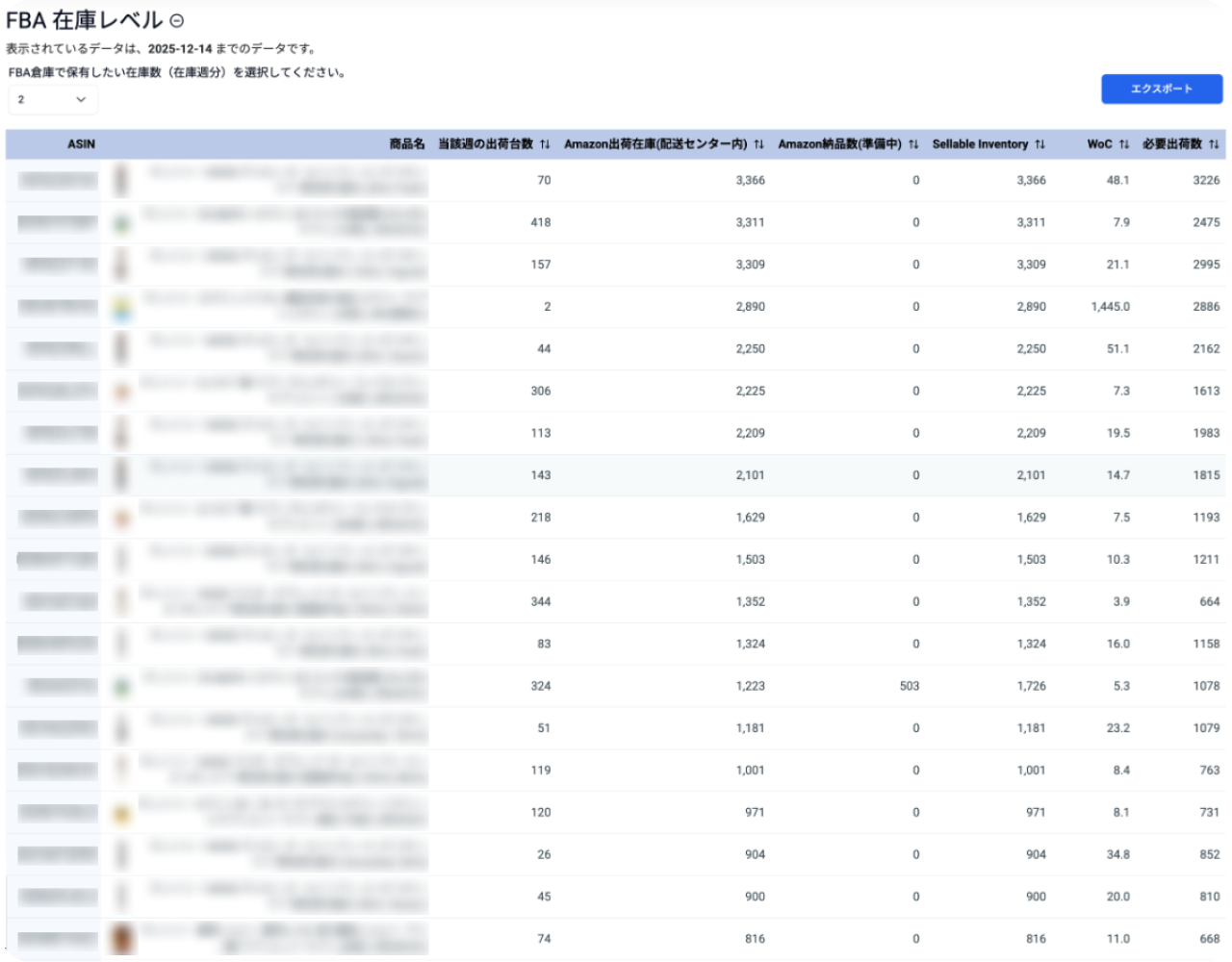 売上履歴と在庫データから、1〜8週間先の需要予測と必要補充数を自動で算出します。欠品リスク・過剰在庫リスクを事前に把握し、継続的な在庫最適化ができます。